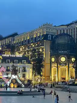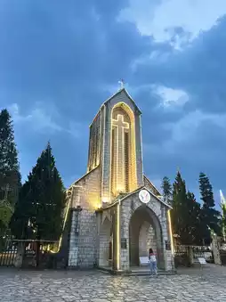 ⛰️ Today, let's travel to Sapa. Sapa is a beautiful city. It feels like traveling in Europe. The buildings are beautiful. Here, especially in the Sun Plaza area, there are beautiful green and yellow colors. It is considered a very important check-in point. Opposite is a multi-purpose field where in the evening, teenagers come to sit and play, listen to music, and play sports. Nearby is an old church.