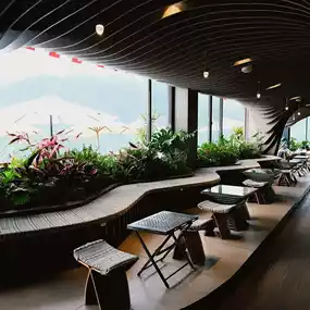 This hotel offers a unique view, unlike any other. Some room types offer mountain views and trains passing by from the bedroom.