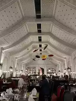 For dining and drinks, I recommend three places. First, Absinth, a rooftop bar with an outdoor fireplace, open until 11 PM (children are not allowed after 6 PM). The bar features a high dome ceiling with a bright purple tone, excellent wine, and delicious tapas. Next is Cacao, a café on the same floor as the lobby, specializing in traditional French desserts. During the colonial era, Indochina was under French rule, so the recipes for cakes, chocolates, and pastries are authentic. Definitely worth trying! If you're hungry, the 3 Cheese Pizza is the best choice—a large tray for 290K VND, very worth it. The café's decor is fashion-inspired. Lastly, Chic is the breakfast and all-day dining restaurant. The food is made with fresh, seasonal ingredients, and you should try both French and local dishes. The ambiance resembles a theater, with a large outdoor balcony offering open views. The sunset here is particularly stunning.
