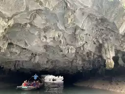 It took about 15 minutes to get to the Halong Bay cruise ship on a small speedboat. The cruise ship included 3 meals and the beds were spacious, so it was very comfortable.