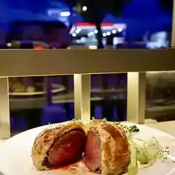 It has been cut open when serving. You can see that the beef fillet🥩 is pink and tender in the middle, about medium-rare. The outer layer of puff pastry is thin and crispy😚. There is a layer of mushroom sauce in the middle to enhance the aroma. Served with baked 🥔 potato chips and 🥦 broccoli, sprinkled Add peppercorns, very flavorful. The beef tenderloin is tender and juicy😋, and it tastes even better with mustard sauce😋!
