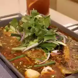🍽️Lunch: Grilled fish set meal, half a river fish, four flavors to choose from, with two bowls of rice + a drink for $158.