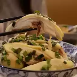 The chicken is very tender and the topping is sprinkled with green onions, but it’s a little too oily!