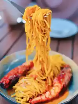 The Spanish red shrimp are very big, the shrimp meat is bouncy and tastes fresh and sweet. The sauce with the shrimp paste from the red shrimp is even more unbeatable, the sauce is very sweet. The handmade pasta is very bouncy, and topped with rich shrimp paste sauce, it's so delicious