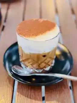 This cup is mixed with Expresso, Avacado, and milk. The taste is surprisingly super like Tiramisu, the expressro is not bitter and is excellent with the fluffy milk cover.