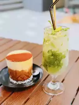 This is a non-alcoholic mojito made from lemon juice, soda and mint, which is extremely cool.