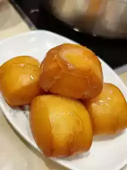 Freshly fried, crispy on the outside and soft on the inside with condensed milk