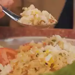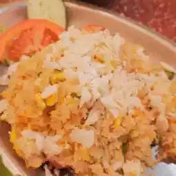 😍The fried rice is sprinkled with snowy 🦀crab meat, with corn 🌽, 🥚shredded egg as toppings, fried until dry, the portion is quite large, and quite filling.