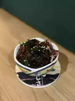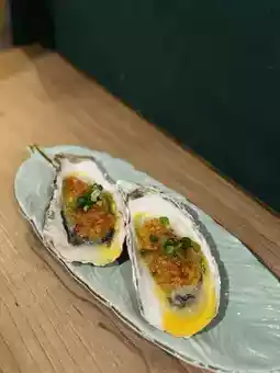 At first there will be Japanese soup 🥣 (bean curd soup) and Japanese appetizer (five-color seaweed salad) 🥗 first, then there are three oysters 🦪 to choose from, we chose the garlic chili grilled oysters spicy and delicious 😙.