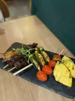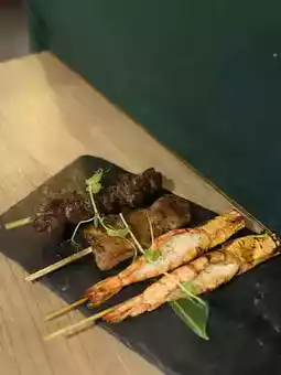 How can you not try skewers 😝, the meal for two includes a skewers set, with beef ribs 🥩, Japanese black pork 🥓, pineapple 🍍, cherry tomatoes 🍅 and okra stuffed shrimp meat 🍤 Tiger shrimp 🦐 ($) 68, nothing to fault 👍🏻.