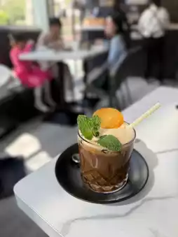 The drink was ordered dark chocolate, very rich and delicious ~ - another Shakerato has Double Espresso, Lemon Juice, Soda, Caramelized Honey Lemon, very special!
