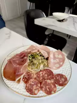 First chose the appetizer set, the ham platter was beautifully presented, with ham, Parma ham, spicy sausage and salad vegetables. You can also choose mushroom soup, quite rich.