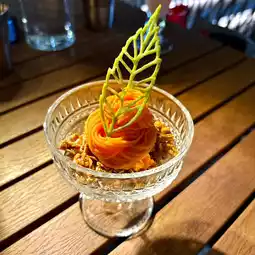 Sweet potato Mont Blanc, cream cheese, caramelized almonds