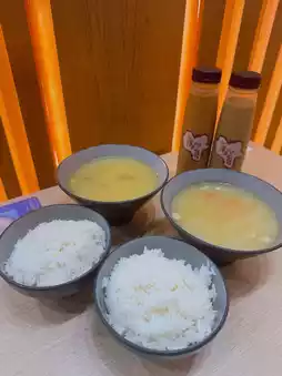 The set includes two bowls of rice, perfectly paired with the other dishes! 🍚✨ There’s also a homemade soup with a clear and sweet broth, especially suitable for this season! 🥣❤️