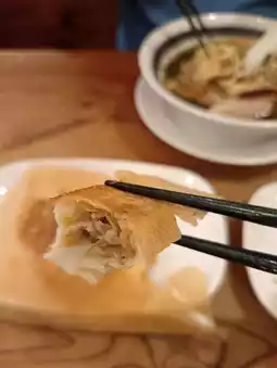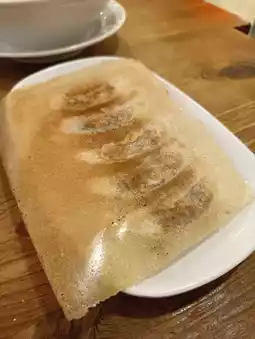 The hanetsuki gyoza has a thin and crispy skin, the filling is fragrant and delicious, with rich meat juices. Dipping in soy sauce enhances the taste even more.