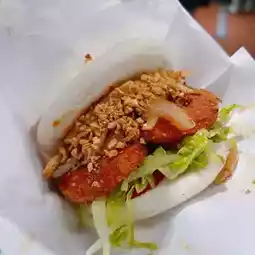Preparing for the 8th typhoon signal day living near Jing Fung saw this recently opened snack shop selling my favorite food gua bao let's go try it 🤣 in addition to the main gua bao, there are also snacks such as bao bao, cheese stir-fried noodles and fried food