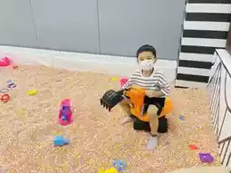 The fourth most popular area is the sand playing and digging area, which is divided into two small areas. There are some small plastic pellets and small wooden pellets, and there are many excavators inside. Children of different ages like it.