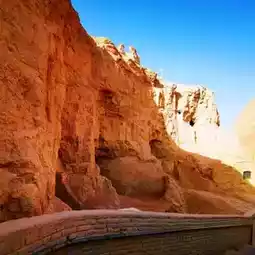 The Bezeklik Thousand Buddha Caves are located at the foot of the Huoyan Mountain in Gaochang District, Turpan, and are scattered on the cliffs.