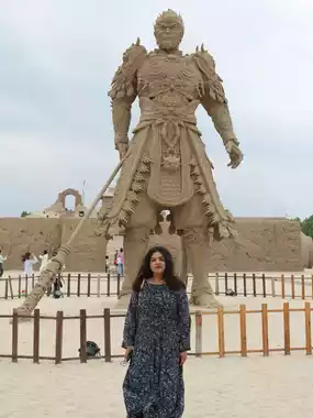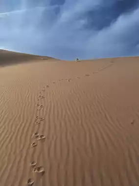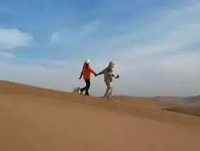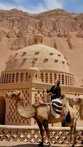In the Kumtag Desert, if you want to ride a camel or try an off-road vehicle, you can buy tickets for the scenic spot. It is 77.5 per person on Ctrip! ⚠️If you don’t plan to try these projects, just like us, choose a free local adventure! Near the scenic area, navigate to [Huaxia Caimen Village], and then there will be an obvious [Xiaohe Tribe] sign at the intersection on the left. Go straight from here, take the first fork to the left, and the second fork leads to the desert on both sides. We chose the right side, the sand is very dense! If you want to experience sandboarding, remember to prepare the tools in advance. On the way from the scenic area to Xiaohe Tribe, there is a shop where you can rent or sell desert supplies. Renting one may cost 20 yuan, and selling it may cost 40 or 60 yuan. We didn’t rent it because it was a bit dirty. Walking in the desert is indeed quite strenuous. It is best for everyone to prepare a tool, otherwise it will be a bit difficult, and if you have tried it once, you may not try it again! 😅🏜️