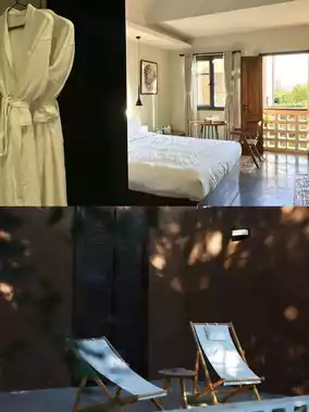 The supplies in the homestay are thoughtful and meticulous, and you can feel the sincerity from the design of the door to every corner of the room. Each room is equipped with high-quality bath products and humidifiers to ensure your comfortable experience. 🥰Not only that, it also provides a rich, delicious and nutritious breakfast, as well as fresh mulberries, which will make your taste buds bloom in the morning. I stayed in the Mulberry Season Double Room in May. When I opened the window, the beautiful scenery in the yard was like a poem and a painting. You can also bask in the sun, which is very comfortable, as if time is staying for you. 😌There are several mulberry trees in the homestay, and there is a private courtyard under a mulberry tree, which is like an exclusive paradise, allowing you to stay away from the hustle and bustle and enjoy the tranquility. 🎯There are also grape racks in the homestay. You can sit and chat with your friends under the grape racks. The laughter echoes in the air, which is very comfortable. 😃You can go to the Frog Alley outside the homestay. There are also many mulberry trees in the alley. You can stroll among them, feel the local culture, take pictures of the colorful characteristic wooden doors, and seem to walk into a vivid folk painting. You can also order a drink at the coffee shop at the door. I ordered the seasonal mulberry juice, which is sour and sweet, and I like it very much, making your taste buds intoxicated at this moment. 😋Here, you can also watch the sunset and admire the stars, and the magnificence and romance of nature bloom before your eyes. Every place in the homestay is very photogenic. The housekeeper will also help you take pictures, leaving you with beautiful memories. 📷