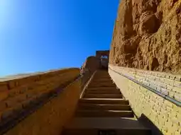 Bezeklik Thousand Buddha Caves, located on the cliff on the west bank of the Mutougou River Valley in the middle section of Flaming Mountain, about 45 kilometers east of Turpan City, Xinjiang Uygur Autonomous Region, is the most abundant cave and mural content in the existing grottoes in Turpan, and it is also one of the larger Buddhist grotto temples in Xinjiang.