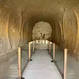 The setting is breathtaking. Between the Mountain and the river you have great photo opportunities. Unfortunately the cave themselves are a sad sight. In the beginning of the 20th century the statues and mosaics where taken and now can be viewed in Berlin, and other places. What remains are empty caves with broken paintings and a faint memory of what was there.
