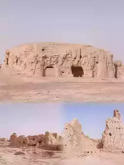 Jiaohe Ancient City, an ancient capital city built in the 2nd century AD. It's hard to imagine that a city built with adobe more than 2,000 years ago still stands today, and we can still see its appearance.