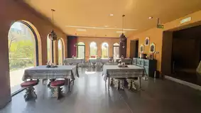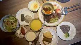 Breakfast is semi-buffet style (fixed set meal + fruits, drinks, porridge, and raisins buffet). The tableware and plating increase guests' appetite. The front desk recommended a local specialty spicy chicken from Silai, which locals often go to eat. It is indeed very distinctive. Although the environment is not that great, the taste is probably only available here. This restaurant basically only sells this one dish, and after eating, the family said they must go again before leaving.