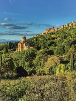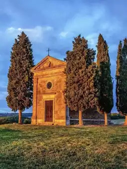 Take a 15-minute hike to the hilltop chapel for a 360° panoramic view of Tuscany’s iconic rolling hills.