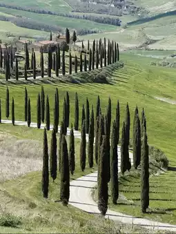 Drive 15 minutes to the S-shaped Cypress Road (Cipressi di San Quirico d’Orcia).