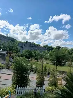4. It is on a mountain, with a beautiful view and a good atmosphere, surrounded by mountains and trees