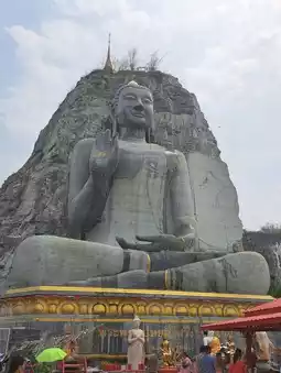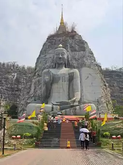 The highlight that makes Wat Khao Tham Thiam famous is the "Phra Phuttha Pusyakhiri Sri Suwannaphum" (Luang Pho U Thong), a Buddha image in the posture of prostrating to his mother. It's carved into the cliff face of Khao Tham Thiam (Flying Dragon Cliff). With its imposing size, it stands 108 meters tall and has a lap width of 65 meters, making it the largest Buddha image in Thailand. Some sources even say it's the largest in the world. Standing beneath this majestic Buddha image will inspire a sense of faith and awe.