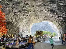 Make merit, pray, and ask for blessings at this must-visit location near Bangkok. Wat Khao Tham Thiam boasts a magnificent collection of Buddhist art, the unseen carved stone Buddha image, "Luang Pho U Thong." The natural scenery is truly breathtaking! There's also a market in front of the temple, and plenty of food to choose from.