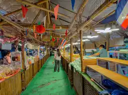 ๐ The market's highlight is its simple and warm atmosphere. Enjoy local delicacies like Khanom Thuai (Thai steamed rice cakes) and Khao Lam (sticky sticky rice in bamboo), grilled fish, and refreshing herbal drinks. ๐ง Enjoy traditional Isaan and fried foods, with a delightful aroma wafting throughout the market. The smells are enticing from the entrance. ๐