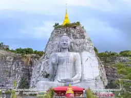 This Buddha statue is located atop a mountain in U Thong District. It is a massive Buddha image carved into a cliff, standing tall and visible from afar. The surrounding atmosphere is peaceful, making it a perfect place for meditation or paying respects for good fortune 🌄💛