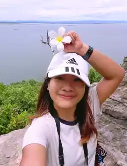 📍The highlight here is the large white Buddha statue, approximately 14 meters tall, or "Luang Pho Khao," enshrined on a pink lotus pedestal with the Ubon Ratchathani Dam as a backdrop. You have to climb over 1,049 Naga steps. It's not very steep, but it's quite tiring. You'll have to stop and rest when you're tired, and the heat makes it even more tiring. Upon reaching the top of the Buddha statue, we discovered... several cars parked at the top! Yes, there are two ways to get there: either by stairs or by car for those who don't want to walk or can't walk. 😅 The road is well-paved and accessible to all types of vehicles. I consoled myself that the walk up was more enjoyable, haha.
