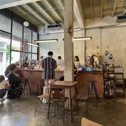 ☕️ A hip retro art style coffee shop for the general public and teenagers of Ubon Ratchathani. The interior of the shop is decorated in a retro style that has been renovated from an old building in Ubon.