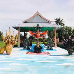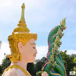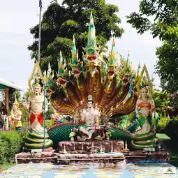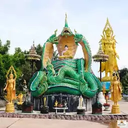 It is an interesting landmark tourist attraction. When you enter, you will see the 21-meter-high Phra Pathom Chakraphat statue in the world-opening posture. It is an auspicious and principal Buddha image. Inside, there is the Glass Chakraphat Cave, which has the statue of Phra Ananta Naga and the statues of Chao Pu Sri Sutho and Chao Ya Sri Pathumma for you to pray for blessings, fortune, and career. This place is famous for fortune and job transfers. At Nakwat Park, there is also an ancient Naga kingdom, a replica of Angkor Wat, the Naga of 4 countries, the land of the Khmer Naga.
