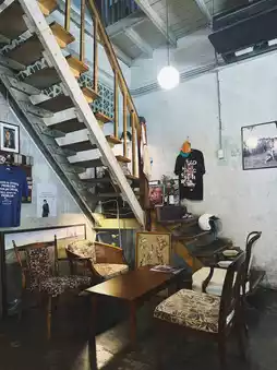 It is a cafe decorated in a simple vintage style, suitable for sitting and sipping coffee and chilling out, giving the feeling of sitting at a friend's house. There is a cool photo corner with Street Art. This is another shop that you shouldn't miss.