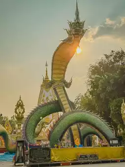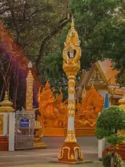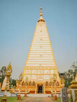 Wat Phra That Nong Bua, Ubon Ratchathani Province, is the location of Phra That Chedi Sri Maha Bodhi or Phra That Nong Bua, a large chedi modeled after the Buddha Gaya Chedi in India, the place where the Buddha attained enlightenment. It was built in 1957 to symbolize the 25th century of Buddhism. Inside the chedi are relics of the Buddha for people to pay homage to.