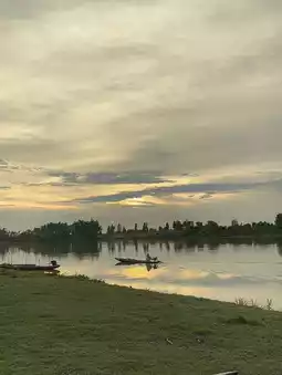 At night, the atmosphere becomes another dimension — lights from shops and tents line up, reflecting gently on the water, making the atmosphere lively but still peaceful.