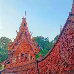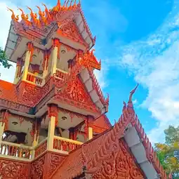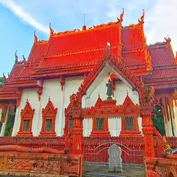 - This temple boasts a unique ordination hall, shaped like a Suphannahong boat decorated with elegant brown glazed ceramics. It's called the "Wihan Klang Nam Ruea Thammanakarat."