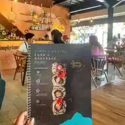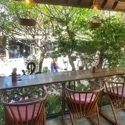 Service was nice and fast. Food and drinks are reasonably priced too. We first sat inside and could see all the people and the whole place but we moved towards the entrance area as we wanted a better view of the the street while eating and drinking. Great place to just chill and relax especially after walking around in Ubud.