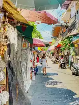 Strolling this market of Ubud, we see lots of dresses, bags, jewelry, little souvenirs and temples along the way. It is extremely hot as we walk here but there are plenty of food and drink stalls and cafes.