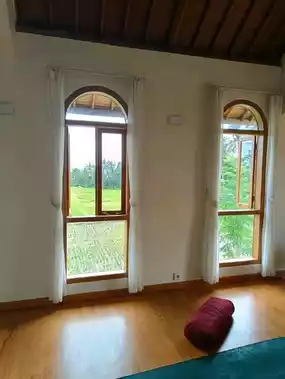 Those who seek healing will find it at this sacred, nonprofit healing school and center. Offering a diverse array of free classes, from Kundalini and Hatha Yoga, to Yin Healing and Reiki Circles, facilitated by a group of qualified and experienced teachers, this place has opened their doors to the Ubudian yoga community, as well as tourists and visitors in Bali for quite some time. Its location in the midst of rice fields gives it a veiled-yet-cozy presence, in contrast to the yoga centers in the city. Physically, the school has a large room upstairs - the Anahata Shala for activities - spacious, roomy and really comfortable, easily able to fit around 15-30 people. The Sunset Restaurant on the ground floor offers tasty and healthy dishes and drinks on their menu, and a pleasant view of paddy fields and palm trees, and a good set of Tibetan paintings on the walls. Also, there is a Healing Shop where one could find tools for meditation, healing crystals and organic products.