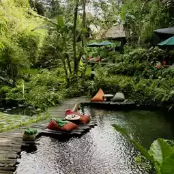 Welcome to Bambu Indah Hotel, a sustainable paradise that celebrates the harmony between nature and design. Set amidst the lush greenery of Bali, this eco-conscious retreat offers a unique blend of traditional Javanese charm and modern luxury. Imagine unwinding in beautifully restored teakwood houses, soaking in a natural swimming pond, and waking up to the soothing sounds of nature. At Bambu Indah, every moment feels like a serene escape into a world of thoughtful simplicity.