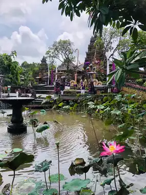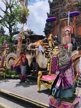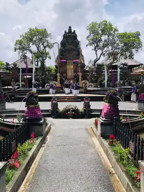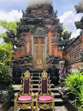 You can see traditional Balinese architecture adorned with delicate carvings.