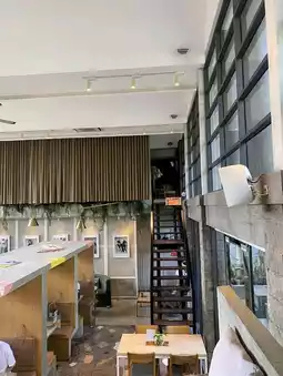 - Pros: Coffee and food above basic quality, decent Wi-Fi speed (good for working), high ceilings that prevent a cramped feeling, great accessibility, many seats