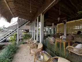 The drink menu is extensive, featuring fresh cold-pressed juices, superfood smoothies, and detoxifying herbal teas. It's the perfect place to stop by and refresh after yoga or meditation.