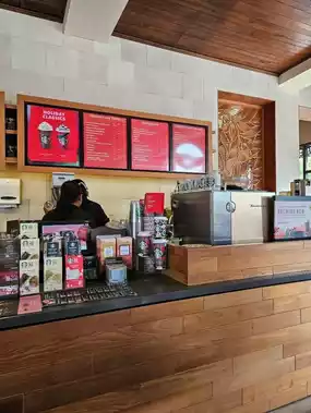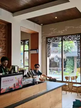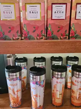 Ubud Starbucks offers a unique atmosphere, reminiscent of nature, despite its central location.